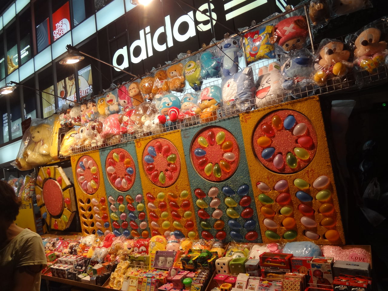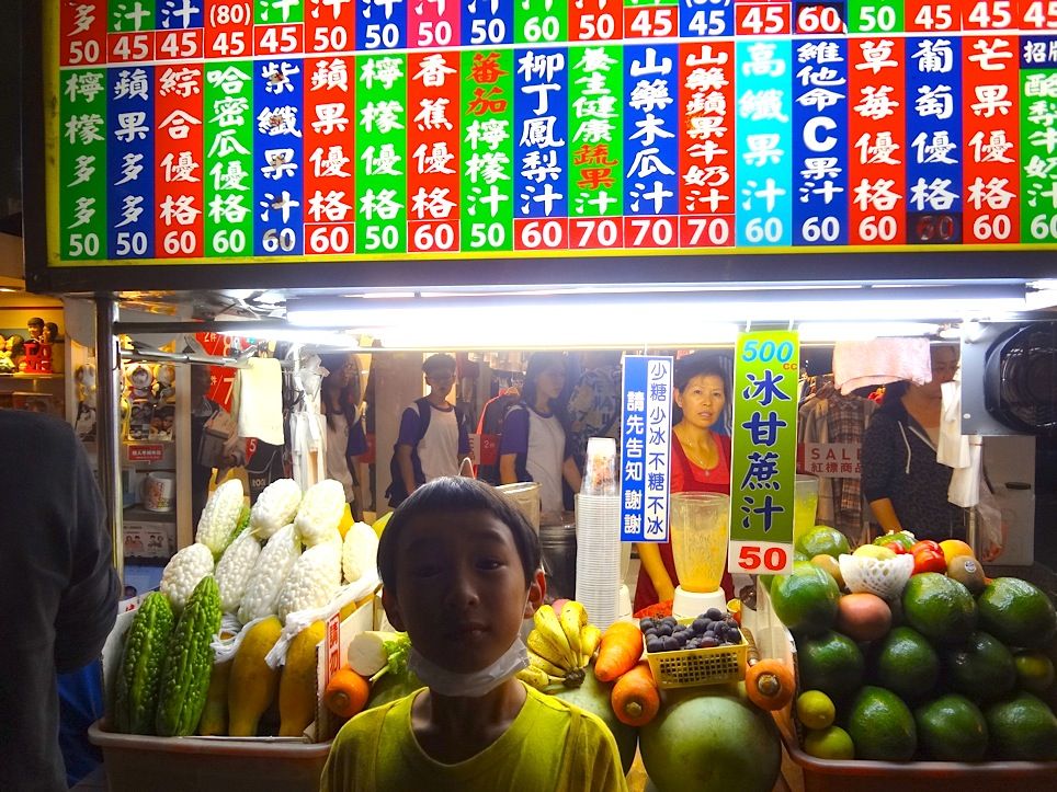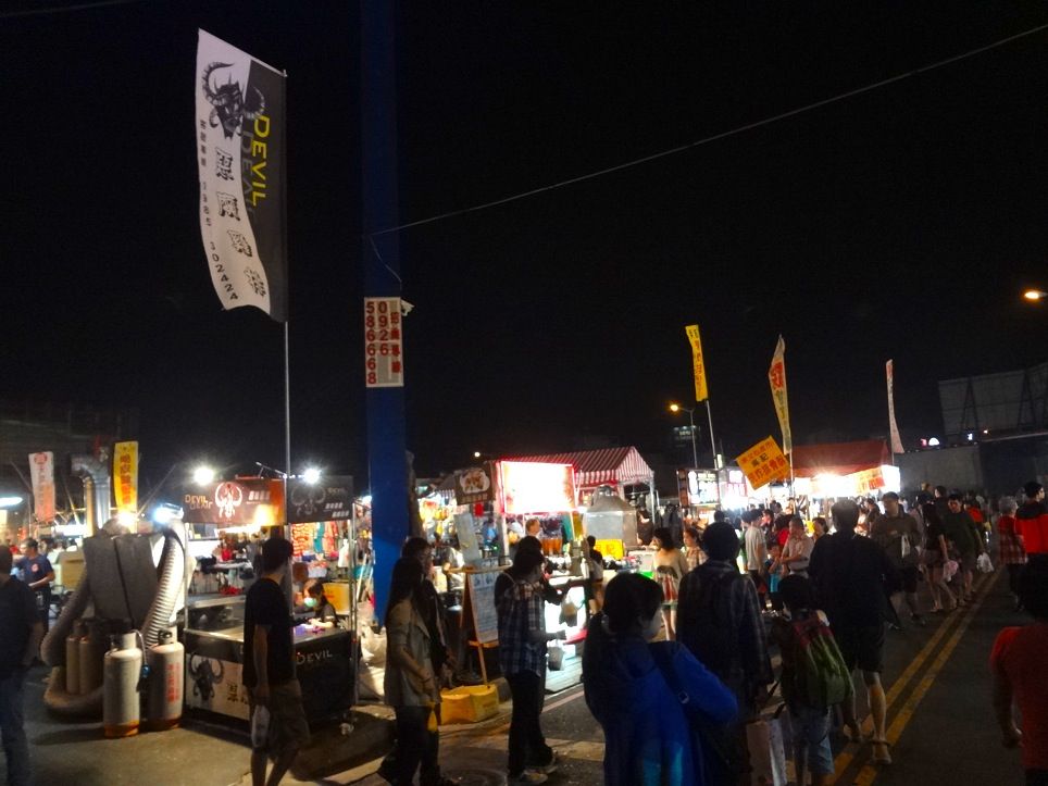 台湾では自炊する人が少ないらしく、朝昼晩と外食文化らしい。なので、街のアチコチにこのような屋台が並ぶ夜市があって、毎日毎晩わいわい賑わっているらしい。焼鳥、肉まん、フルーツ、イカ焼き、ドーナツ、お菓子、揚げ物、いろんな謎の料理、くっさい臭豆腐、クジ引き、射的、ダーツ、金魚すくい、エビ釣り、などなど。とにかくすごい活気!