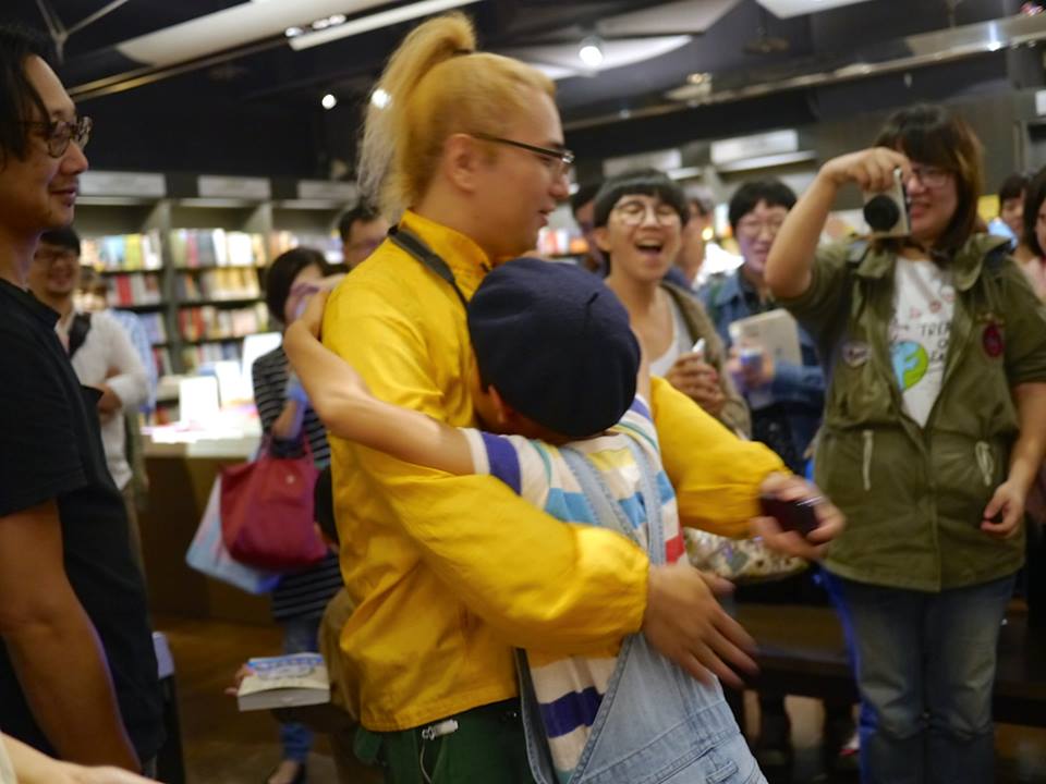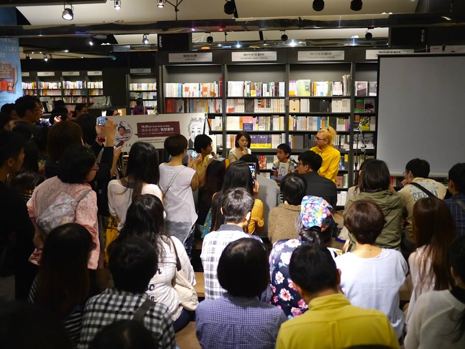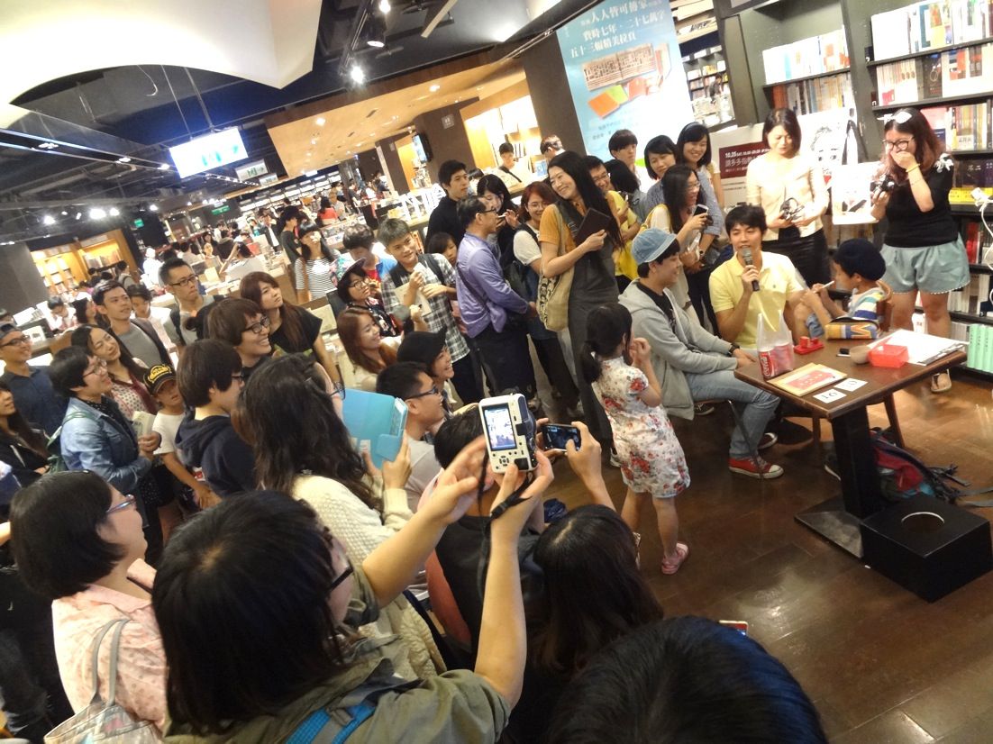 こんな大きな場所で、正直、台湾でどのくらいモンドを知ってる人がいるか分からないし、お客さんあまり集まらずにしょっぱいイベントになるんじゃないかという不安があったのだけど、書店にモンドが現れると一斉にざわっとなった。
