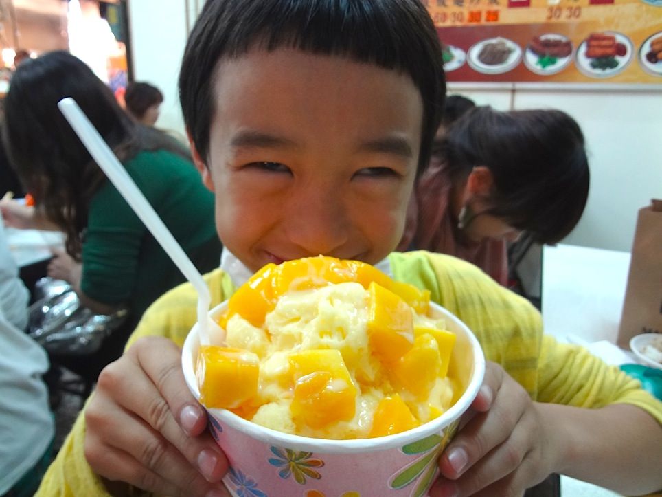 歩くだけで面白すぎるんだけど、さすがに歩き疲れたので、椅子とテーブルのある酒場に入る。モンドは大好物のマンゴーたっぷりかき氷。