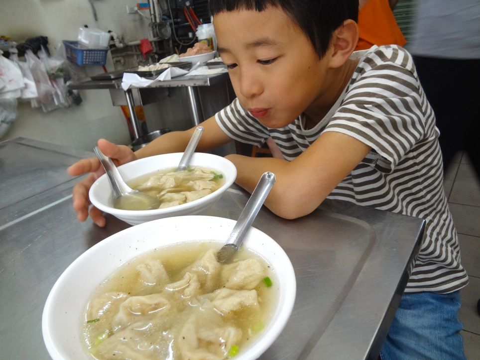 朝飯を3店舗まわろう!という目標で最初に入ったお店で肉まんとワンタンを勢いよく食べる。
