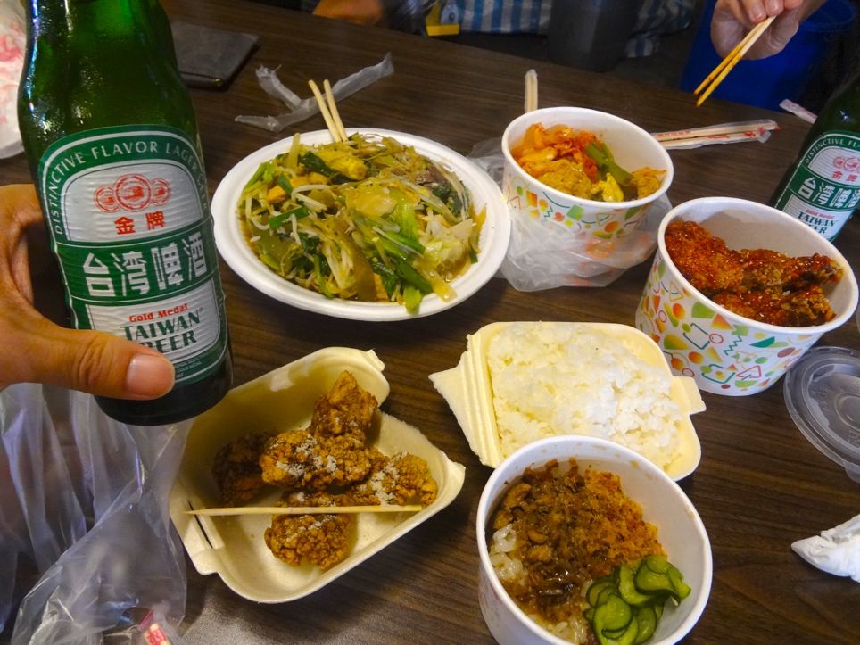 大人は缶ビール片手に屋台でいろいろつまみ食い。台湾ビールはすっきり呑みやすい味わいで、おれは大好き!缶のデザインもカワイイし。そして安い。500ml缶で90円弱くらい。
