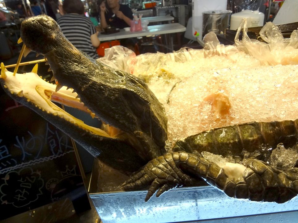 中にはこんな背中を開かれたワニまである。どーやって食べるのコレ(笑)??