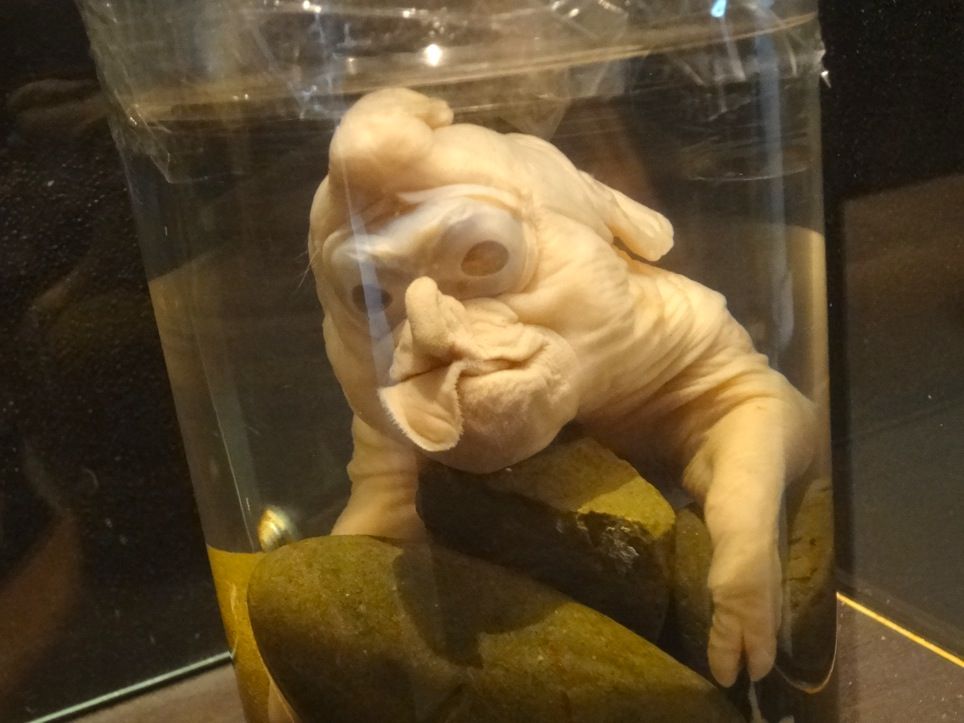 まずはいきなり奇形動物のホルマリン漬けがずらり。