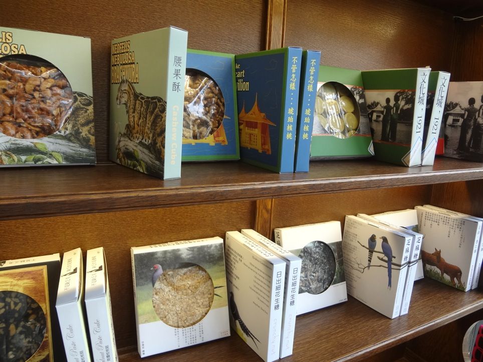 最初に連れてってもらったのは「台中日出宮原眼科」ってお店。ここは眼科って書いてあるけど、目の医者ではない。お菓子屋さんなのだ(笑)。しかも超ハイセンスなパッケージデザインでどれもこれも欲しくなる!!ここの太陽餅とパイナップルケーキがオススメ品。
