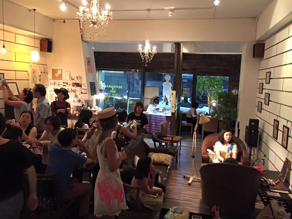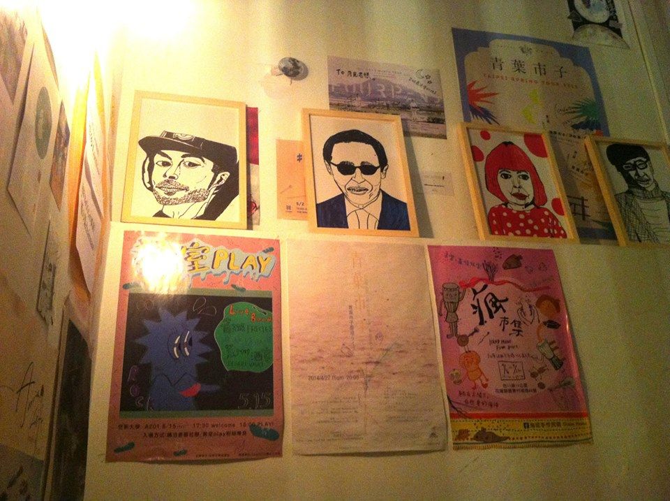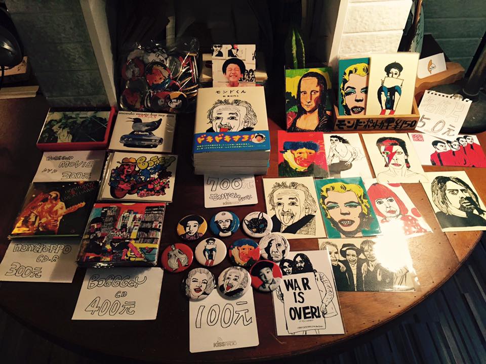 モンドの似顔絵屋さんの後は、そのまま地下に降りてボギーのライブが始まるという流れだ。台北月見ルは1階がカフェ、地下がライブハウスになっており、地下もモンドの展示会場になっている。