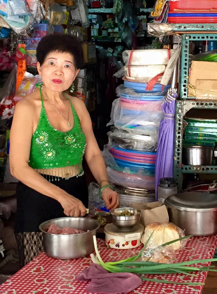 雑貨屋なのに店先で餃子を作っていた(笑)。さっきの肉屋で買った肉はこれか!