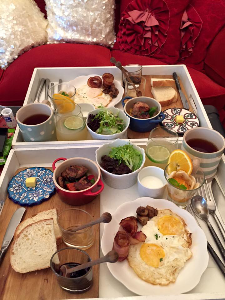 夜はゴージャスなVVGのゲストハウスに泊まり、朝はリッチなブレックファーストをキュートなガールたちが部屋まで届けてくれる。