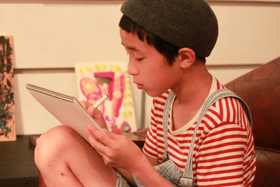 台湾の10才にして人気画家という迷路くんが、モンドに逢いにきてくれた。モンドの方が1才年上だけど、迷路くんデカイ(笑)!!言葉は分からずともお互い絵を描いて交換。