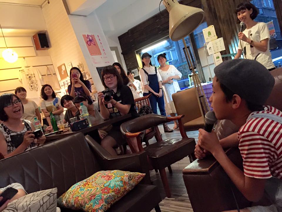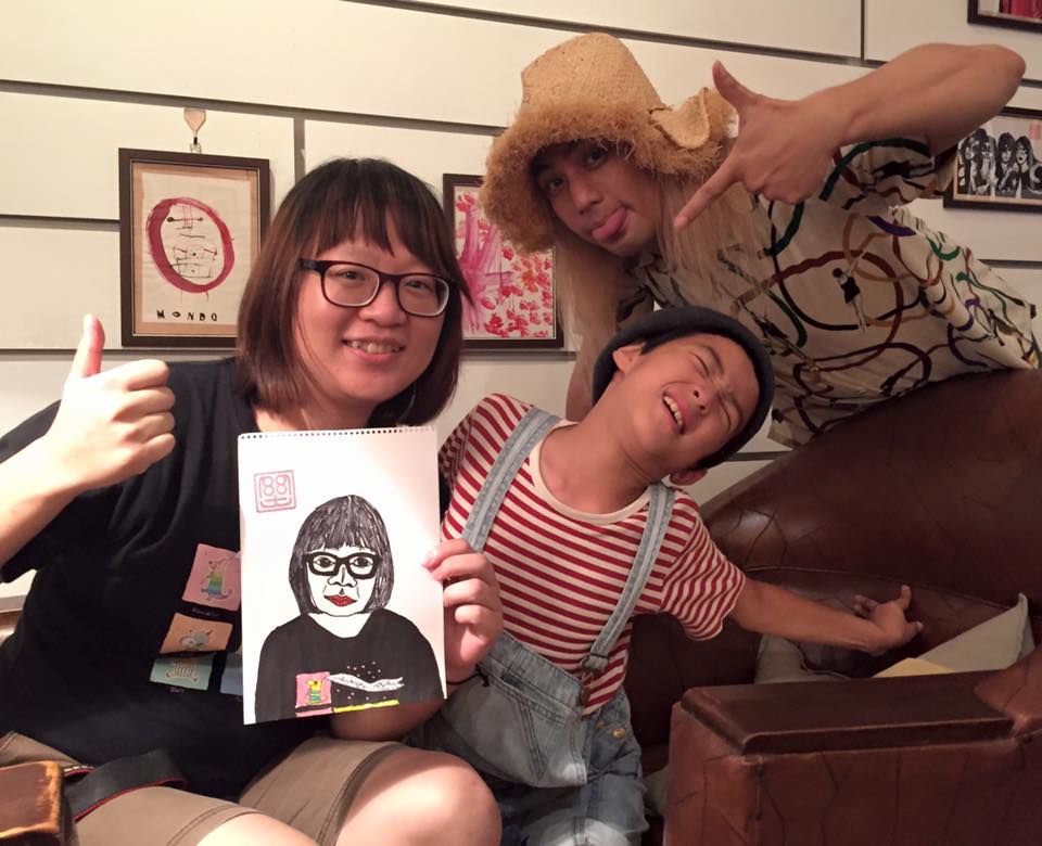 実はこの日、会場にはもうひとりの画家さんがゲストで来ていた。台湾の人気イラストレーター飛飛飛くん。どこかモンドに似てる(笑)。10年後って感じ?