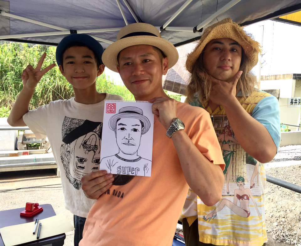※どの会場も似顔絵料はおひとり2000円 ※カップルやご家族を一枚の紙に描くこともできます。 二名様3,500円(500円引き) 三名様5,000円(1,000円引き) 四名様6,000円(2,000円引き)です。