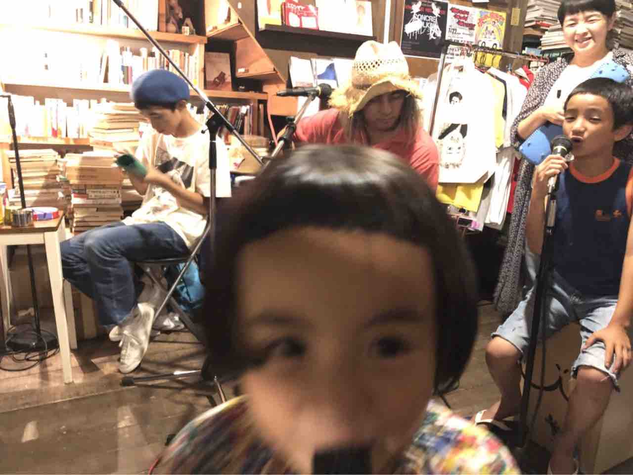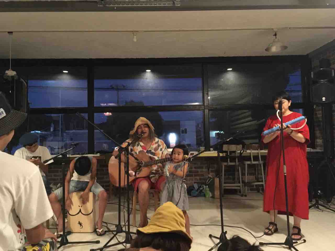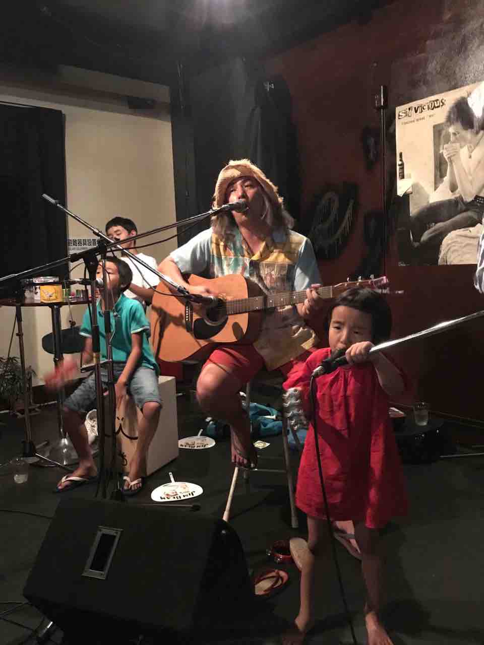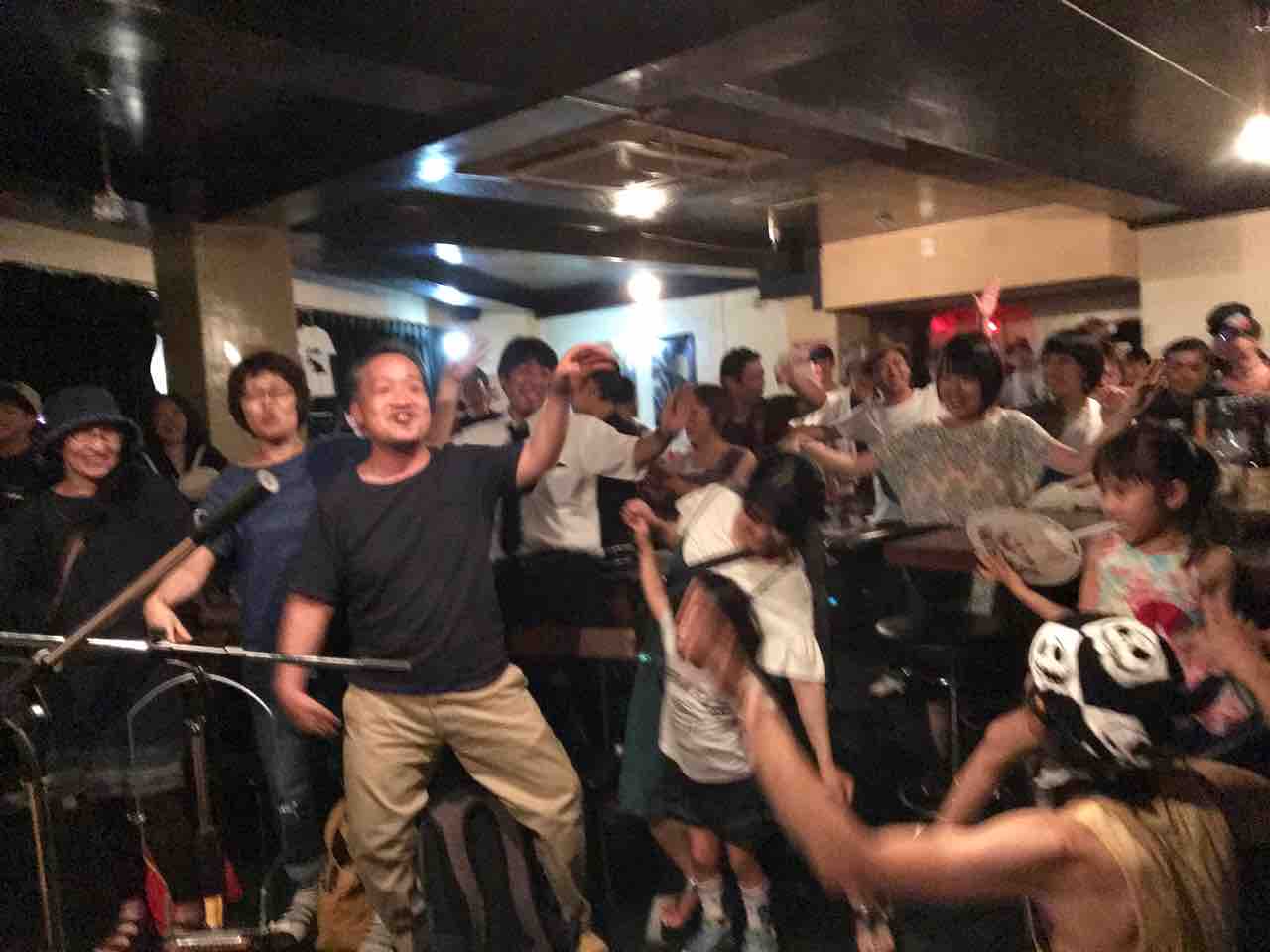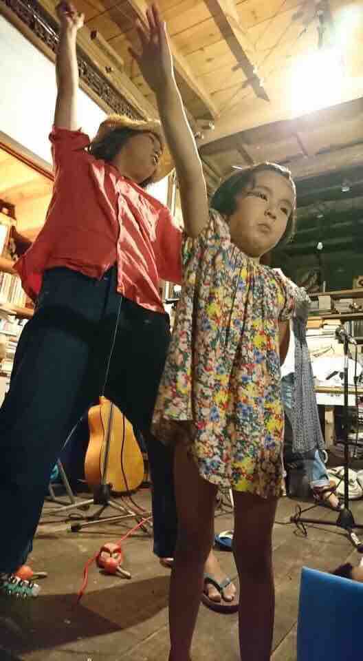 急遽なのでもちろん音響設備は無し、生声と生音のみで40分間!今ちゃんはまるでポールダンサーのように柱を登ってくるくる回る!テンちゃん叫ぶ!モンドはいつもどおり(笑)。家族一丸で盛り上げる!!