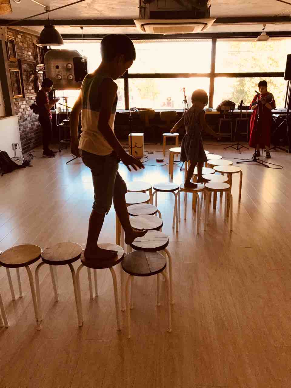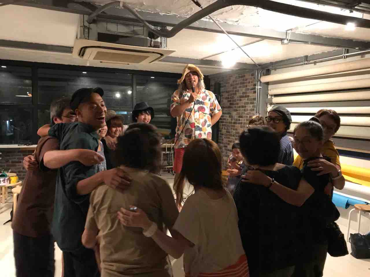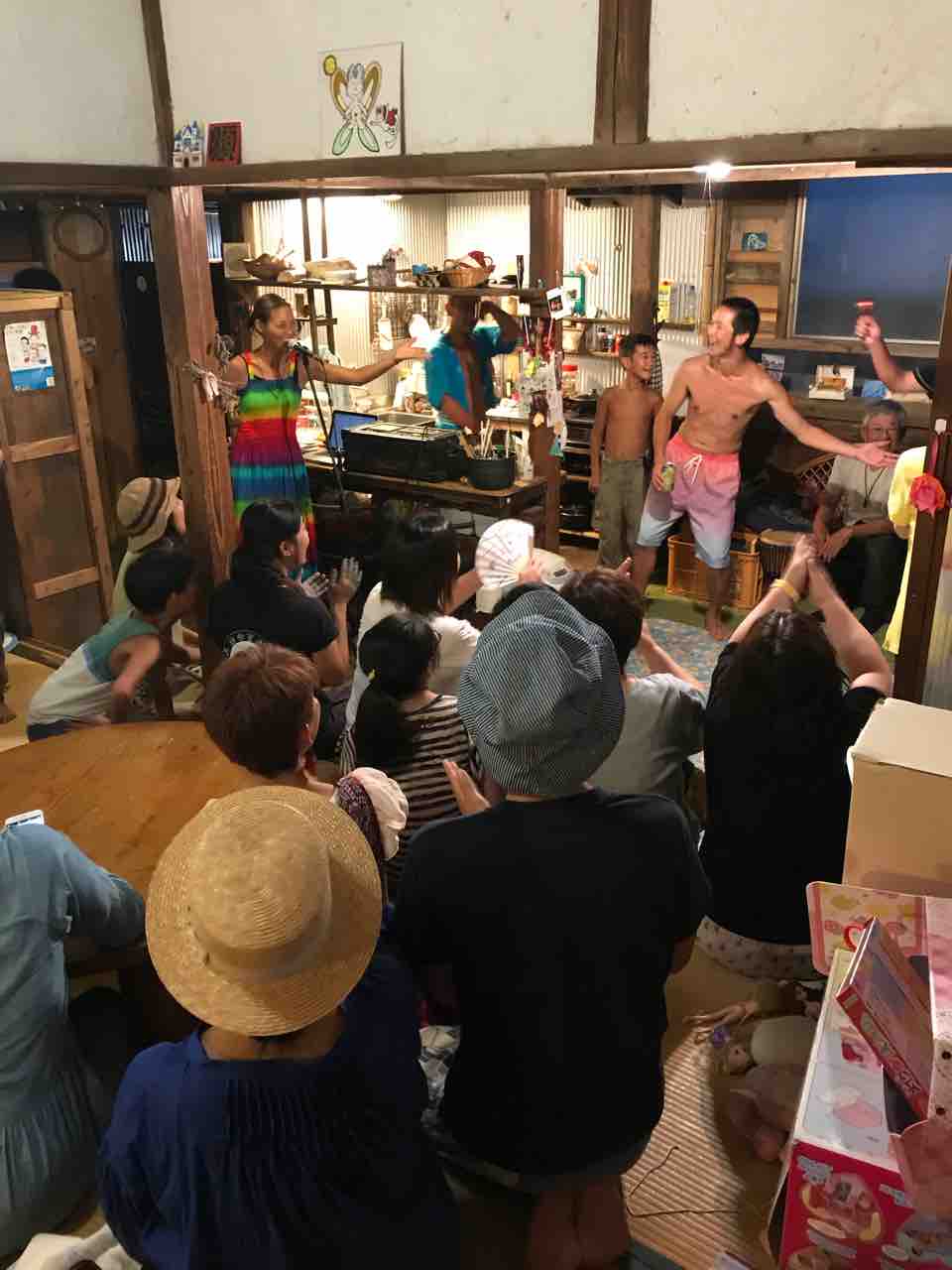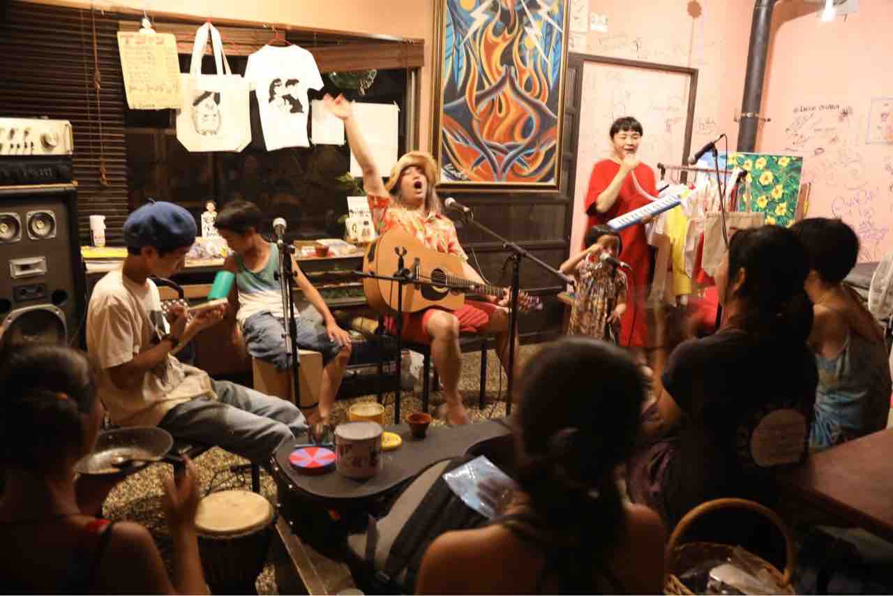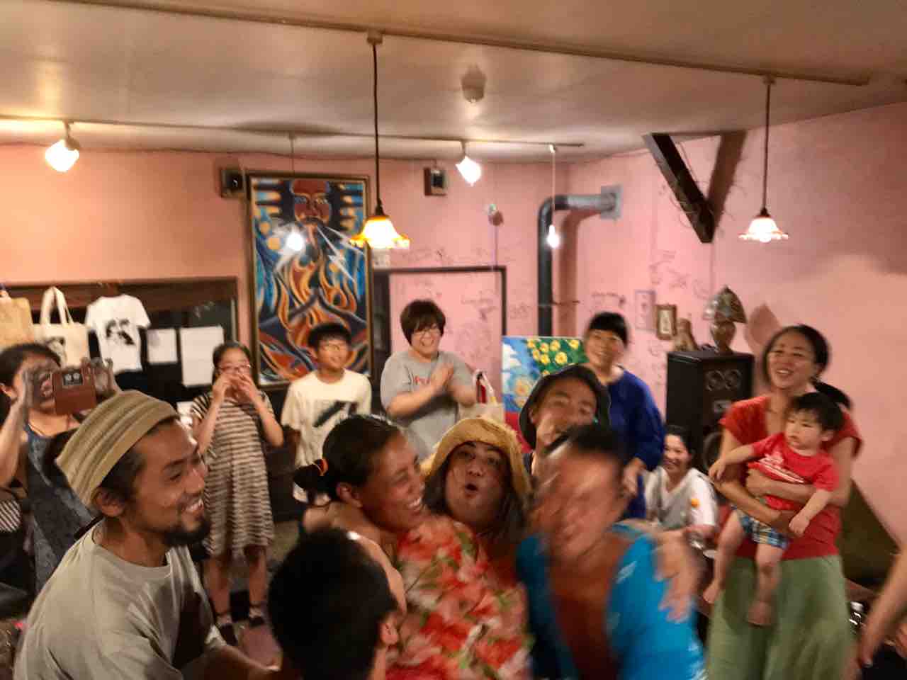 急遽なのでもちろん音響設備は無し、生声と生音のみで40分間!今ちゃんはまるでポールダンサーのように柱を登ってくるくる回る!テンちゃん叫ぶ!モンドはいつもどおり(笑)。家族一丸で盛り上げる!!