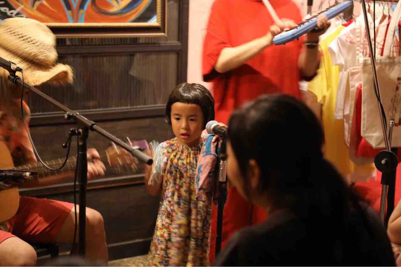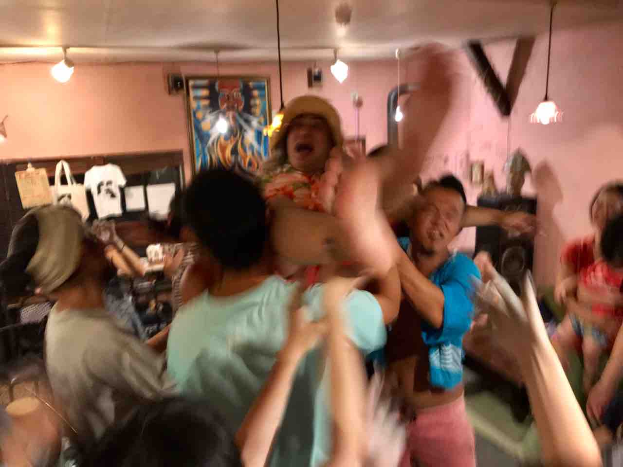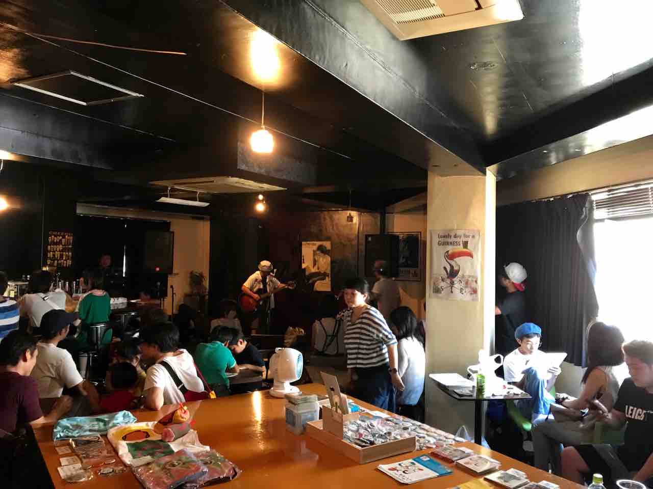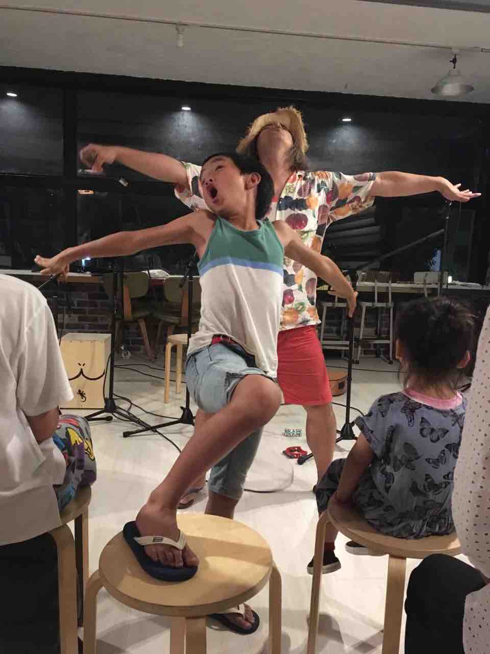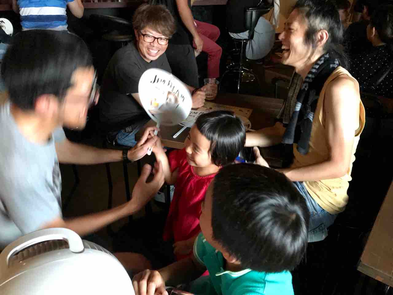 急遽なのでもちろん音響設備は無し、生声と生音のみで40分間!今ちゃんはまるでポールダンサーのように柱を登ってくるくる回る!テンちゃん叫ぶ!モンドはいつもどおり(笑)。家族一丸で盛り上げる!!