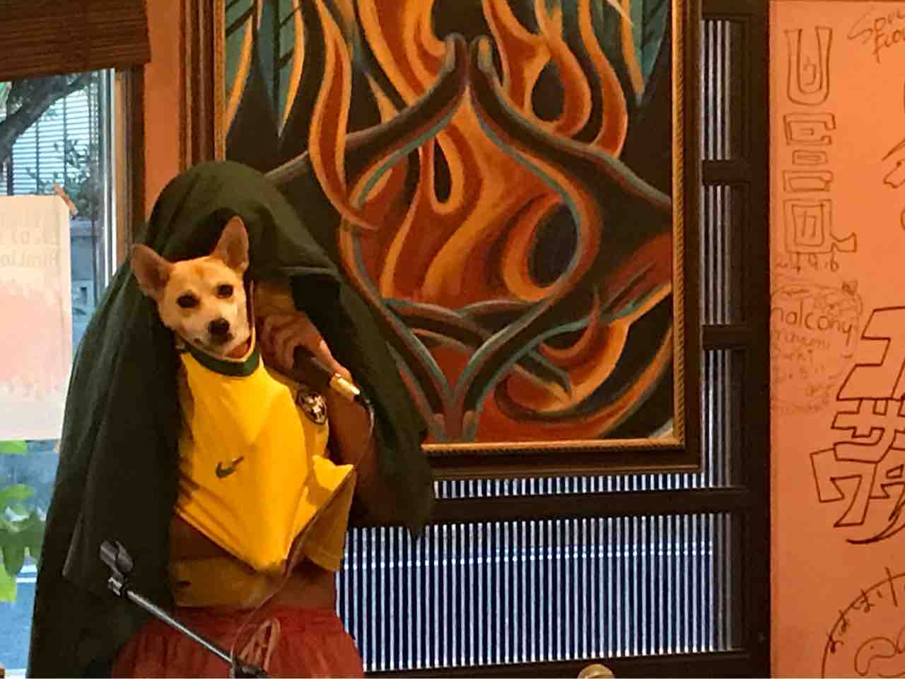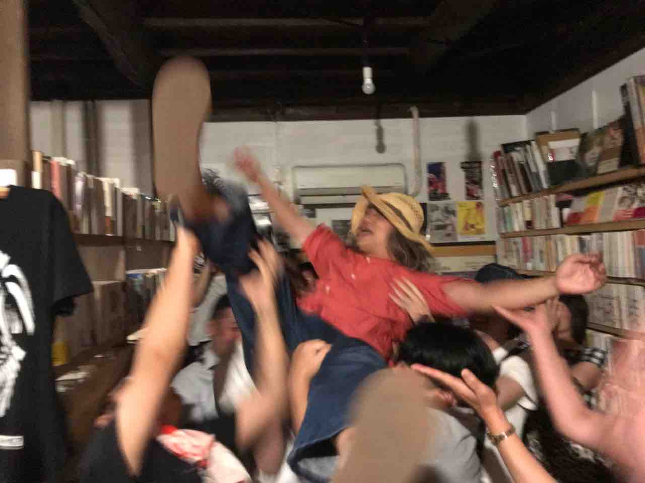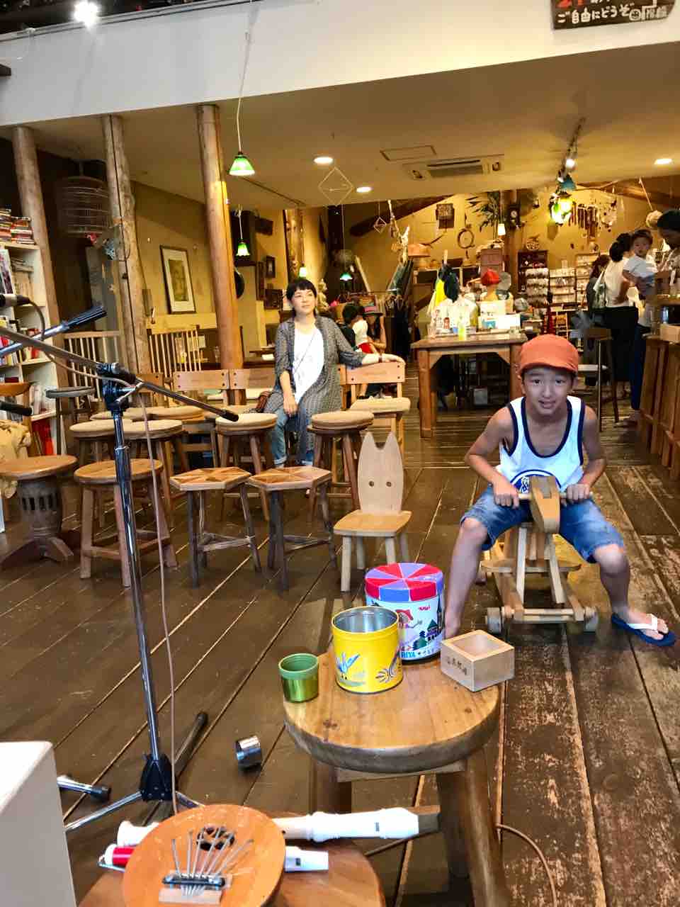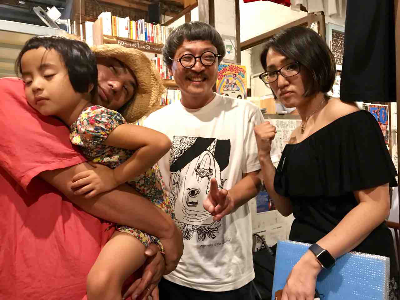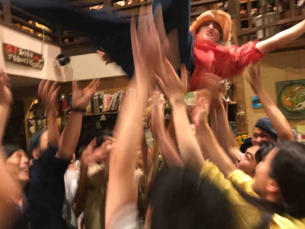 急遽なのでもちろん音響設備は無し、生声と生音のみで40分間!今ちゃんはまるでポールダンサーのように柱を登ってくるくる回る!テンちゃん叫ぶ!モンドはいつもどおり(笑)。家族一丸で盛り上げる!!