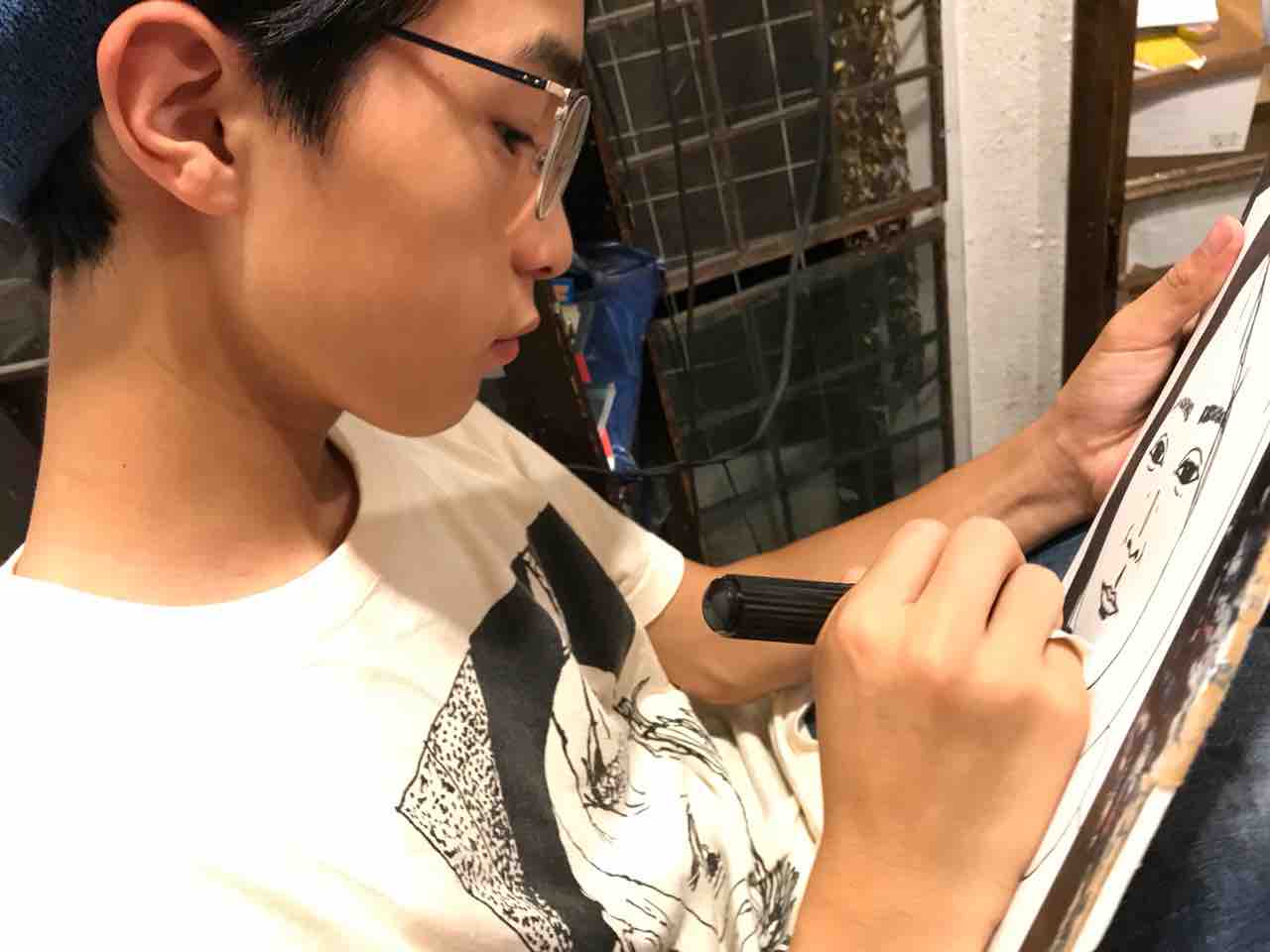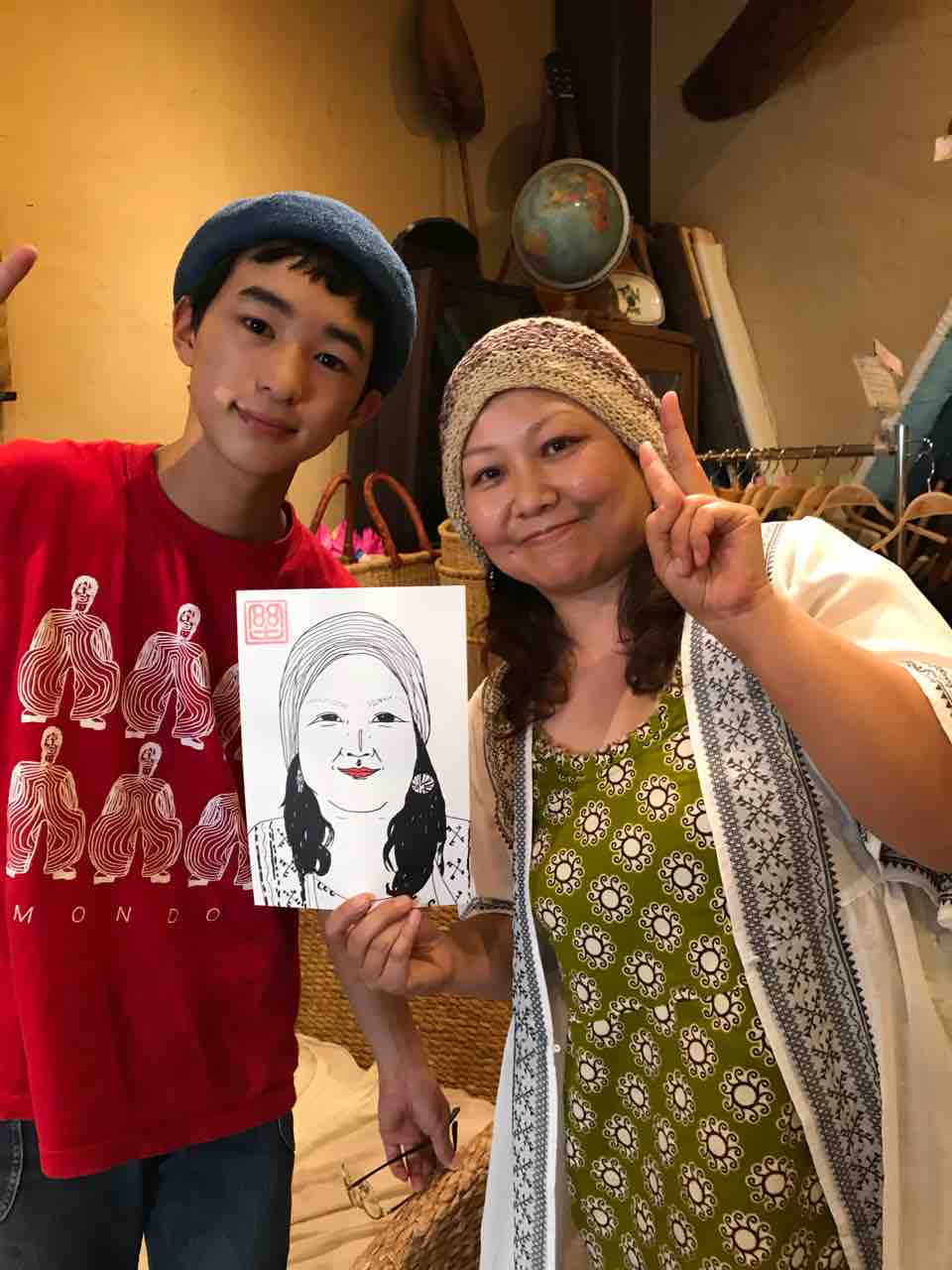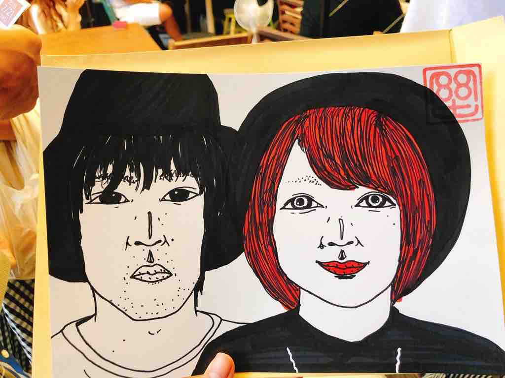 昼の部は予定通り開催できた。台風の予報もなんのその!モンドの似顔絵屋さんには予約満席なのに描いてほしいというお客さんが次々と来ていただいたので定員数よりだいぶ多く描く!初めてきた場所でこれは嬉しい。ありがたやありがたや!