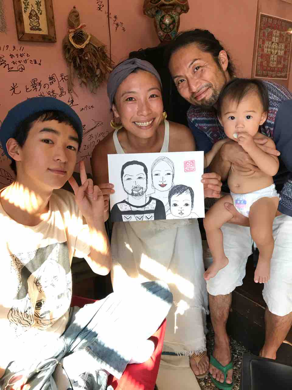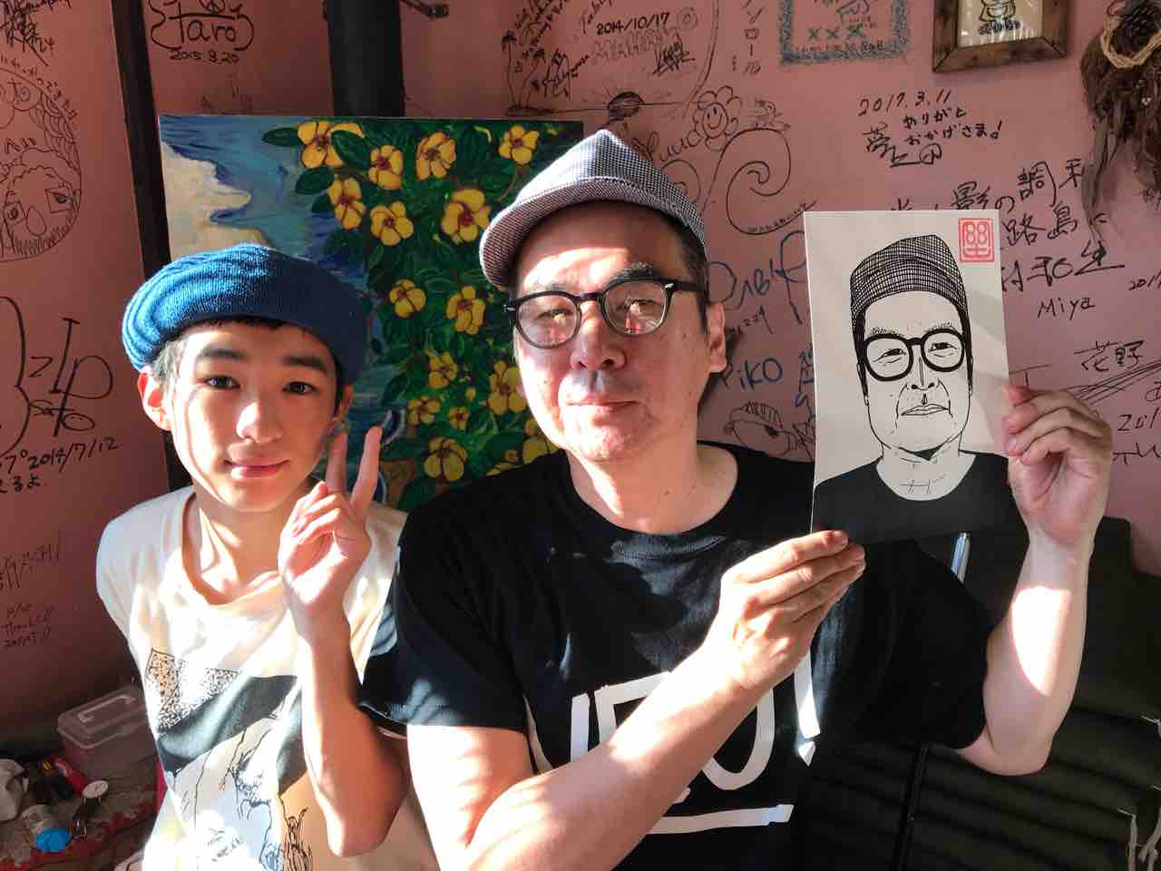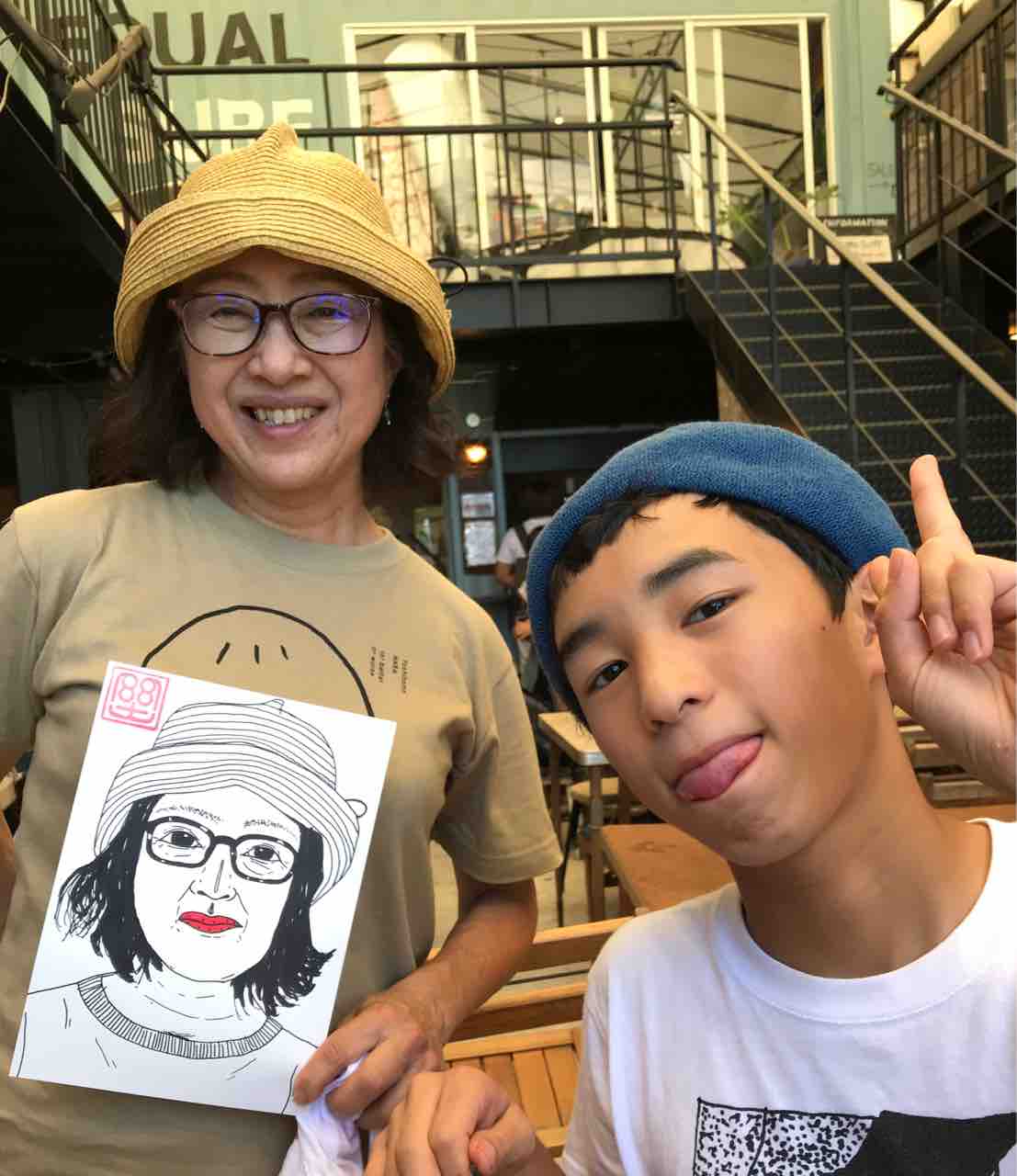 昼の部は予定通り開催できた。台風の予報もなんのその!モンドの似顔絵屋さんには予約満席なのに描いてほしいというお客さんが次々と来ていただいたので定員数よりだいぶ多く描く!初めてきた場所でこれは嬉しい。ありがたやありがたや!