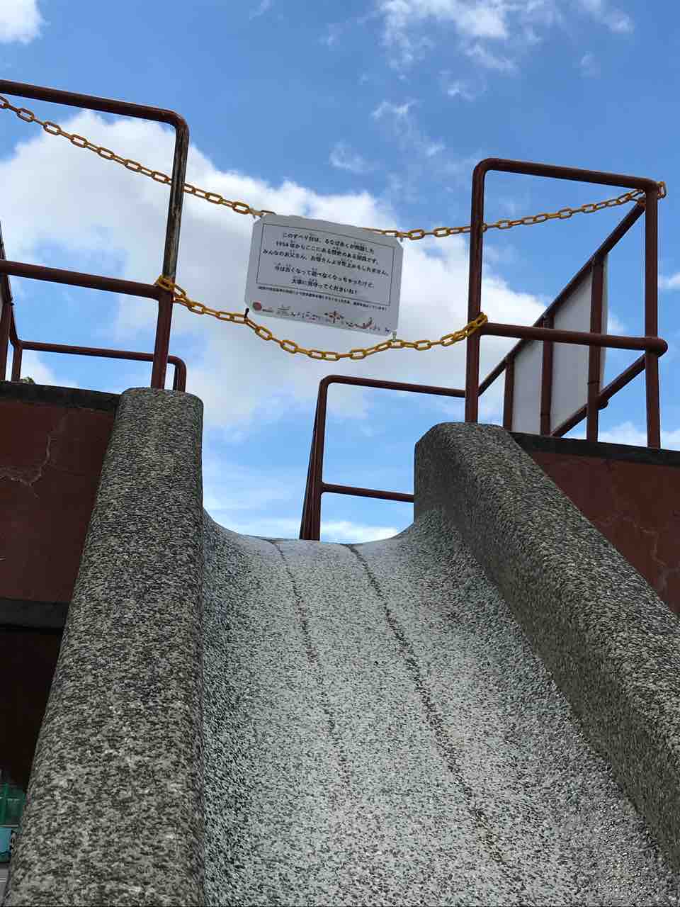 この古いすべり台に書かれた言葉からも愛情が伝わってくる。