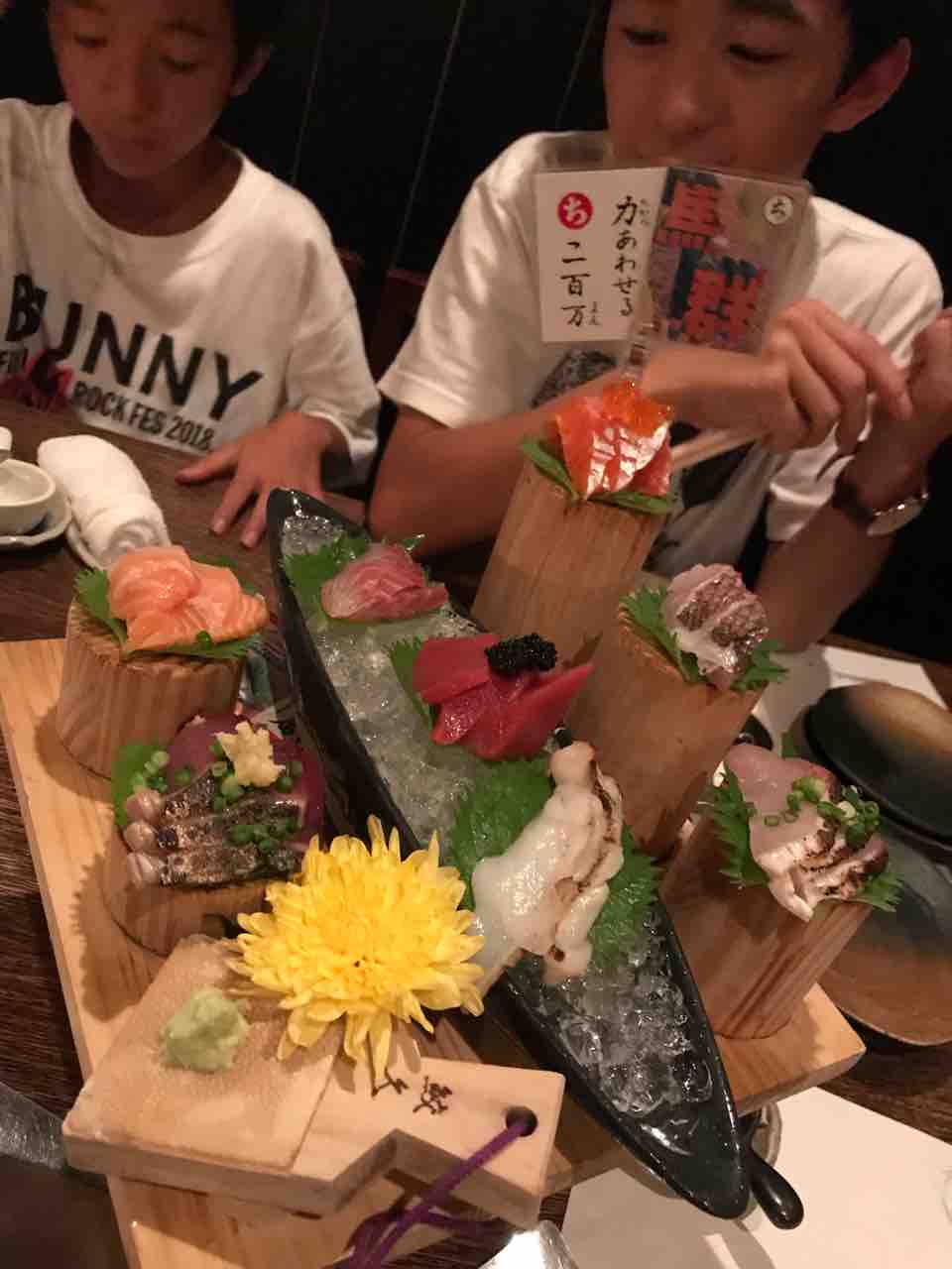 チープでレトロな遊園地から一転し、打ち上げはゴージャスなオトナの居酒屋「海人」へ!刺し盛りがヤバイ!なにもかもぜんぶウマかった!!