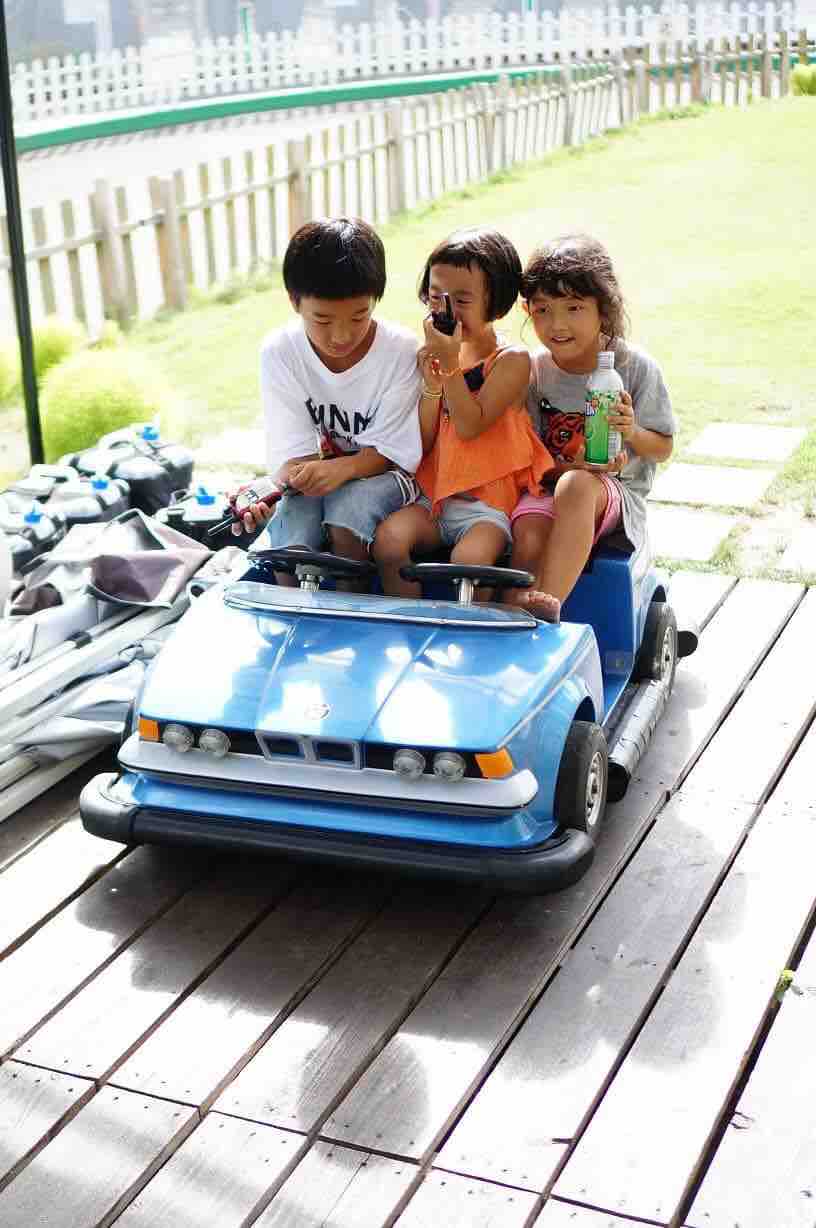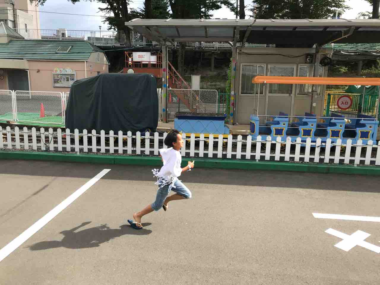 動いていない遊園地のなかでも子供たちは遊びをみつけて一日中ずっと走り回ってる。子供の発想力はどんな場所でも開きまくるのだ。