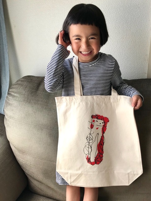※今ちゃんが描いたナゾの生き物「まるまる」、かわいいです。生地は白。(Sサイズの身幅は約49cm、Mサイズの身幅は約52cm、Lサイズの身幅は約54cm)、キッズ100も作りました!
