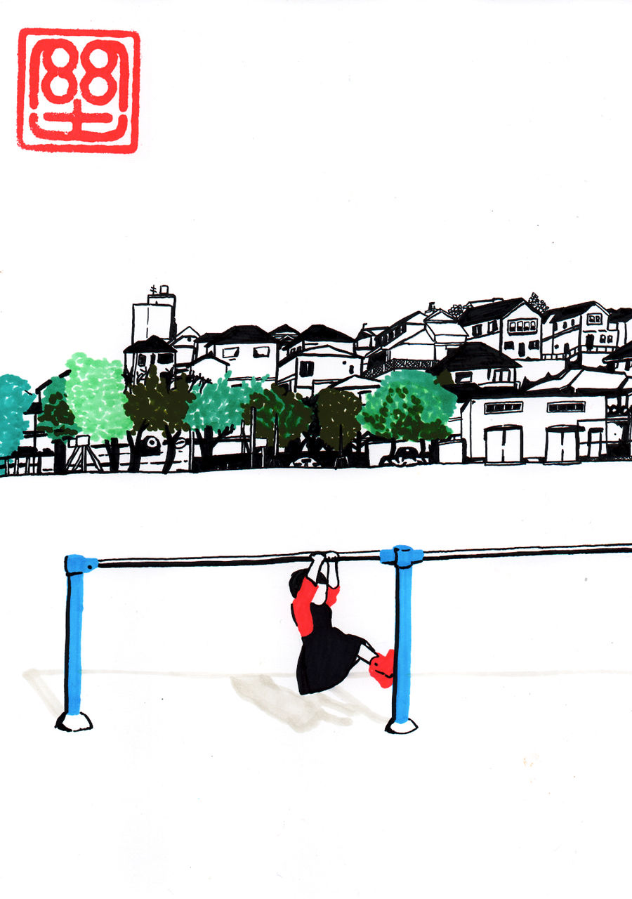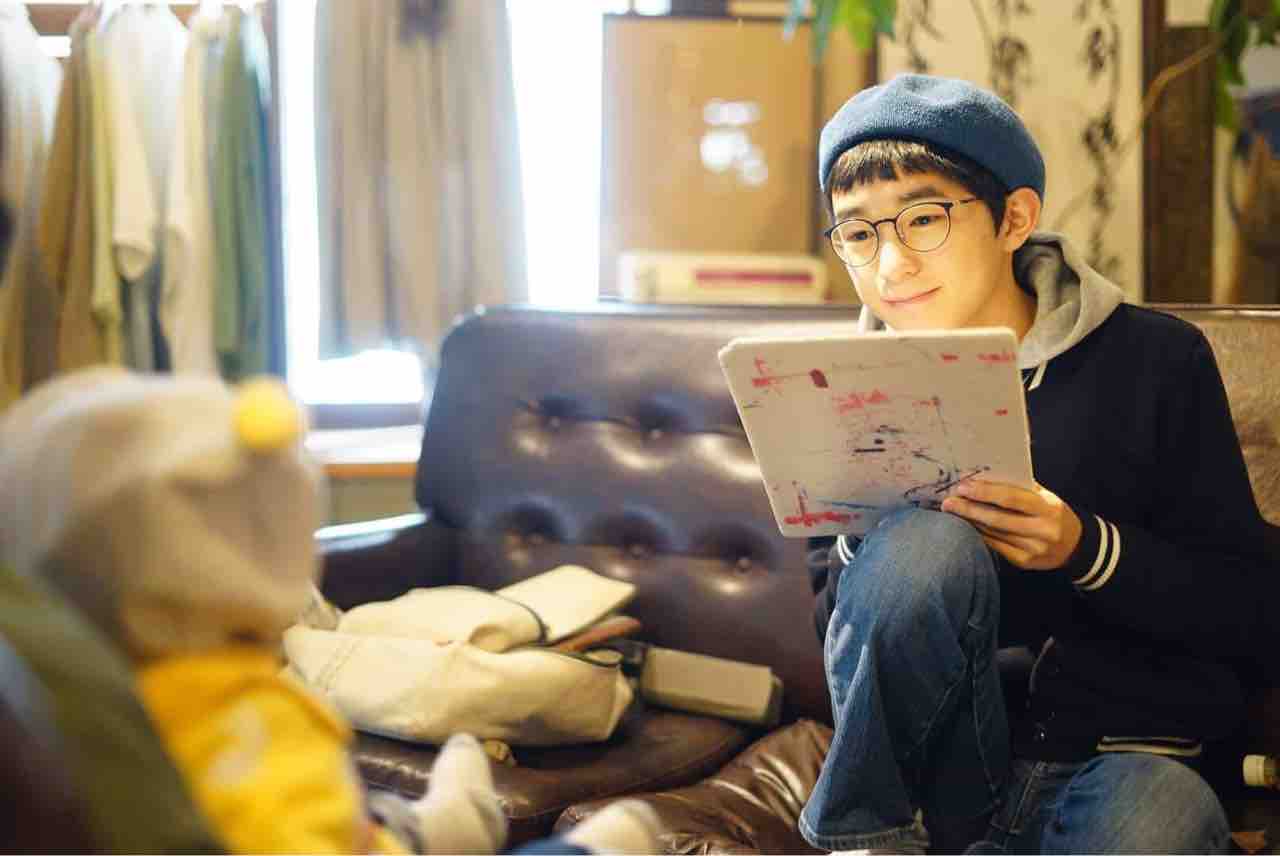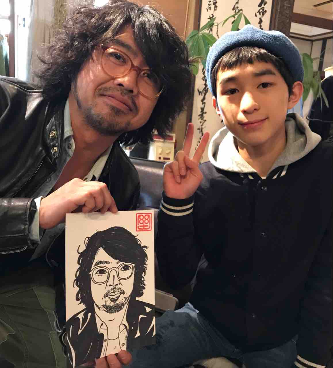 写真家のたこやきくんが撮ってくれた似顔絵屋さん中のモンド。いい表情してるな。