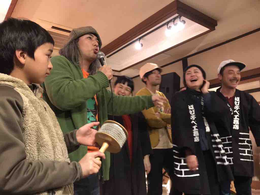 ボギー家族ツアー鹿児島編、夜の部開始。オープニングに急遽決まったサイキシミン!名曲「街」を歌いグッとさせたあと、アカペラで「男はつらいよ」。クソすべる(笑)。