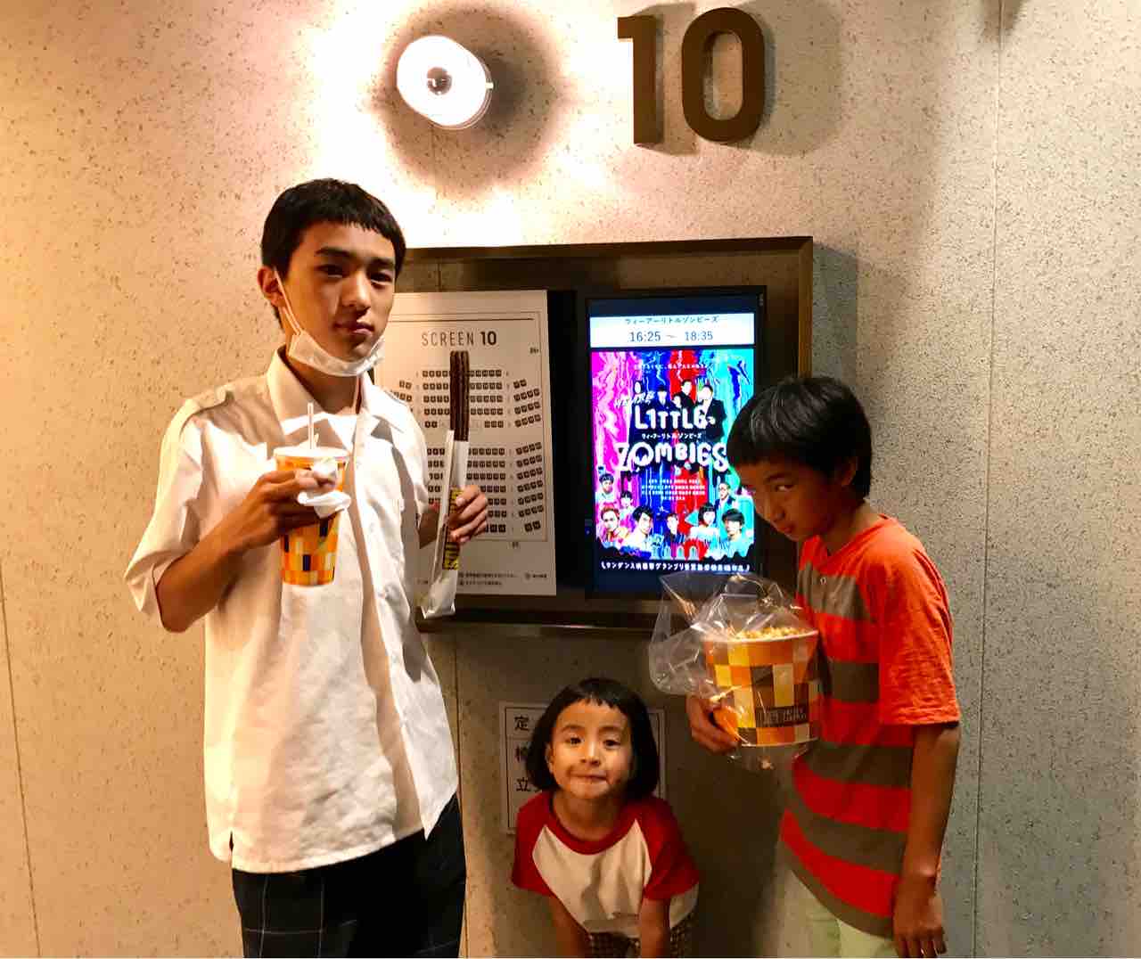 「ウィーアーリトルゾンビーズ」がユナイテッドシネマももちの大きいほうのスクリーンで観れるのこの日が最後と知り、車に乗ってまず今ちゃんを幼稚園に迎えに行ったあと続けてテンちゃんを小学校に迎えに行き、さらに高校までモンドを迎えに行ってももちに直行した。
