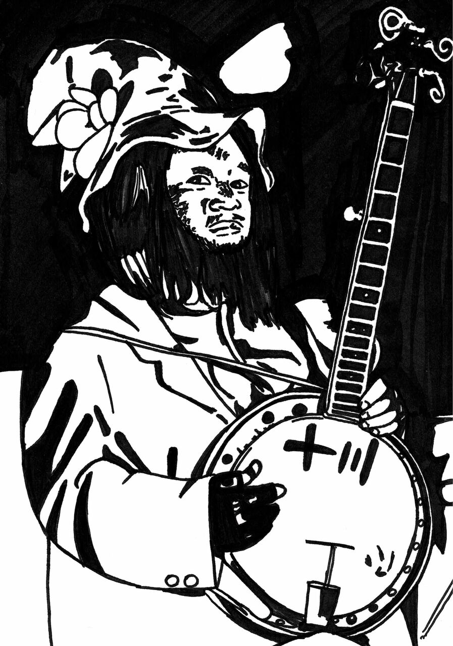 「ウィーアーリトルゾンビーズ」でバンジョー弾きの浮浪者役で出演の原さとしさん。