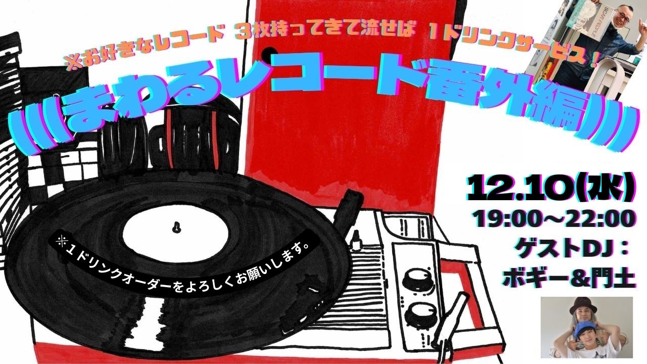 □『まわるレコード番外編』(ゲストDJ・ボギー&門土)19:00~22:00