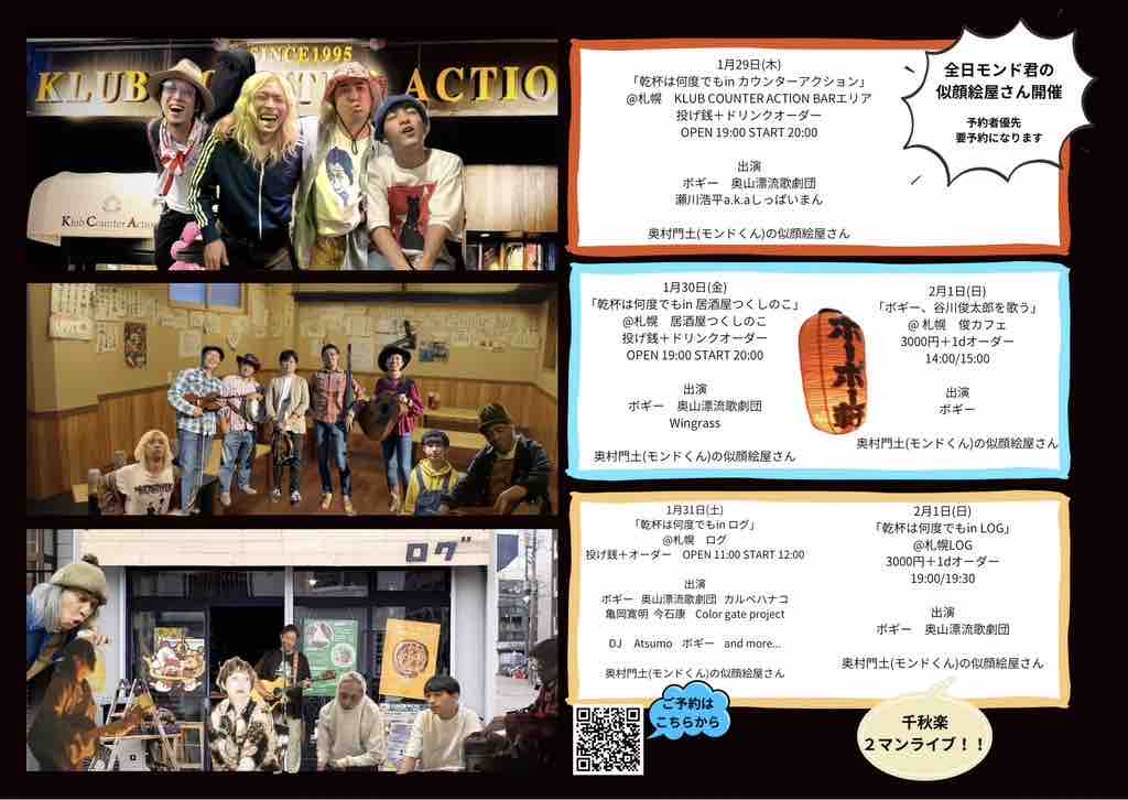 各公演のご予約、ボギーまで連絡くださいね。