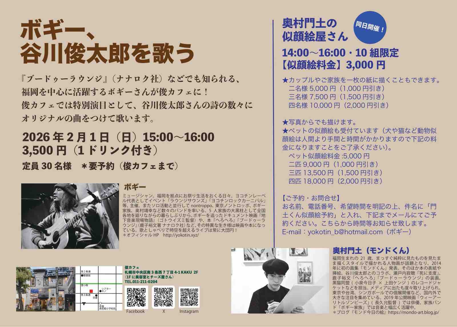(似顔絵は要予約、ボギーまでDMください)