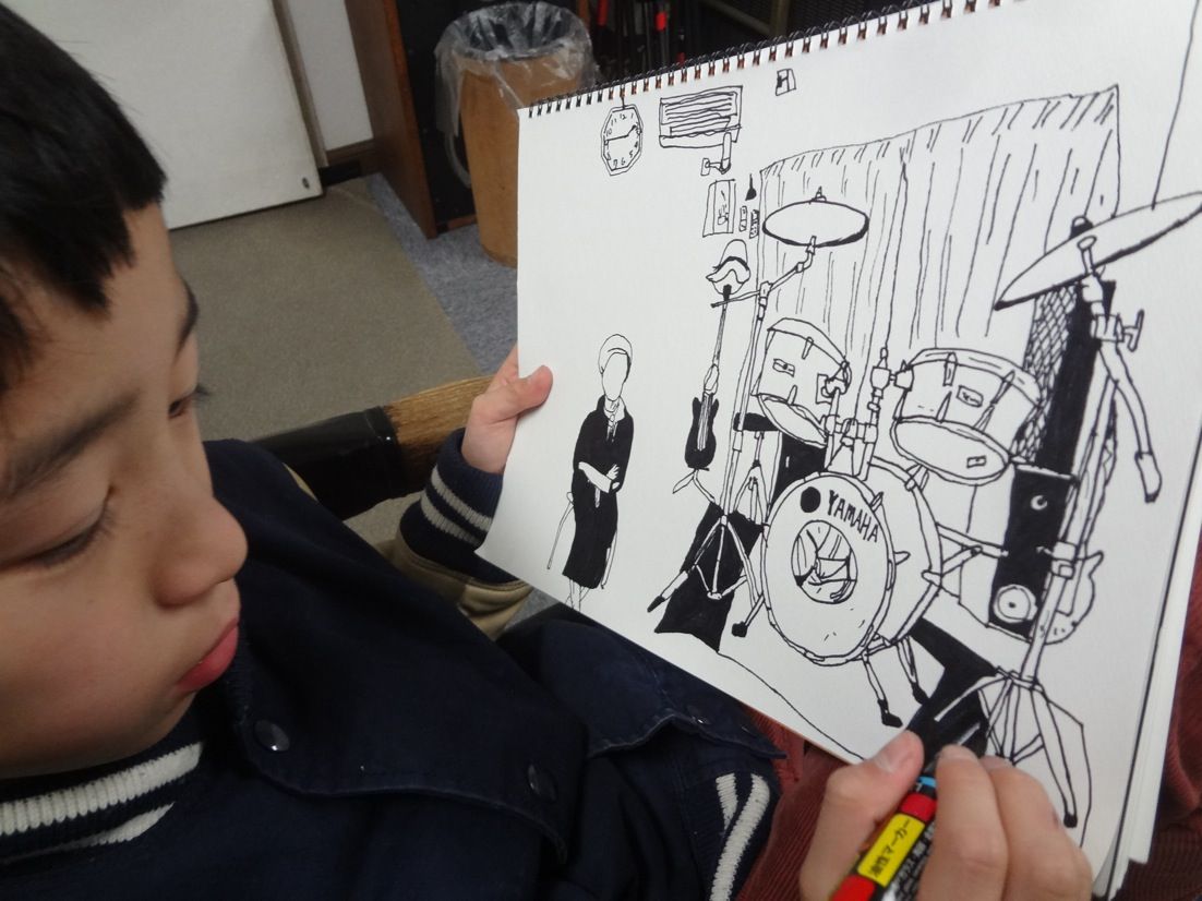 今日は、ヨシノスタジオの名物おばちゃんに依頼されてスタジオの部屋の絵をモンドが描きにいきました。